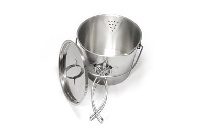 Sehr vielseitige Pfanne aus hochwertigem Edelstahl. Die Pfanne kann entweder hängend als Bratentopf oder als hoher Kochtopf auf einem Holzofen, Grillrost oder Gasbrenner verwendet werden. Dank der Ausgießöffnung und des eingebauten Siebs ist sie perfekt als Teekanne geeignet. Dieser Topf ist ideal für Bushcraft, Survival und andere Outdoor-Disziplinen.