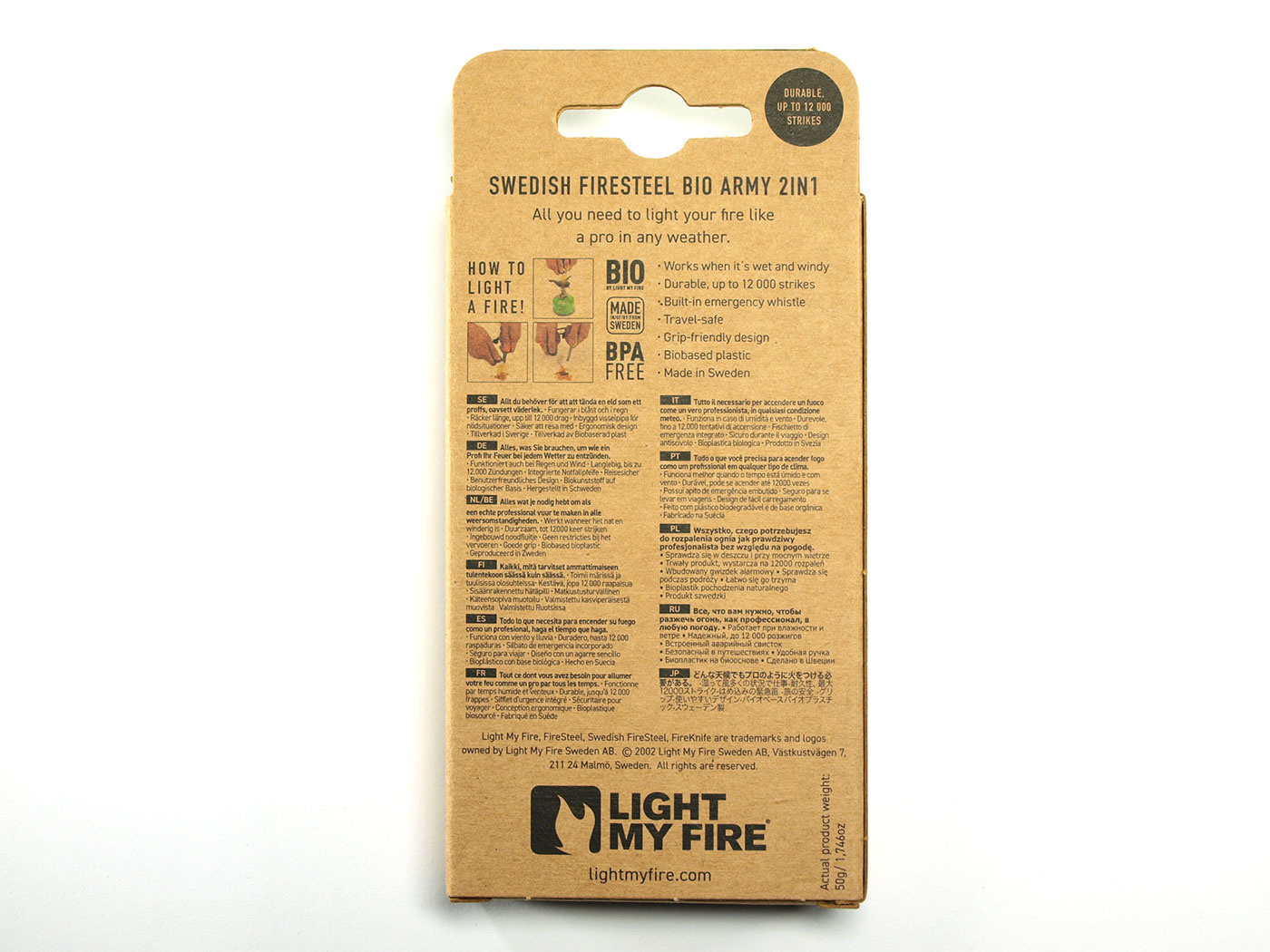 - Griff des Anzünders und des Feuerstahls aus biologisch abbaubarem Kunststoff