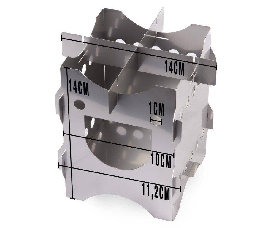 Dieser immer fröhlich aussehende Kocher lässt sich komplett flach lagern und schnell zusammenbauen. Er besteht aus 7 Metallplatten, die zusammen den Kocher bilden. Komplett mit robuster 1000D-Cordura-Aufbewahrungstasche.