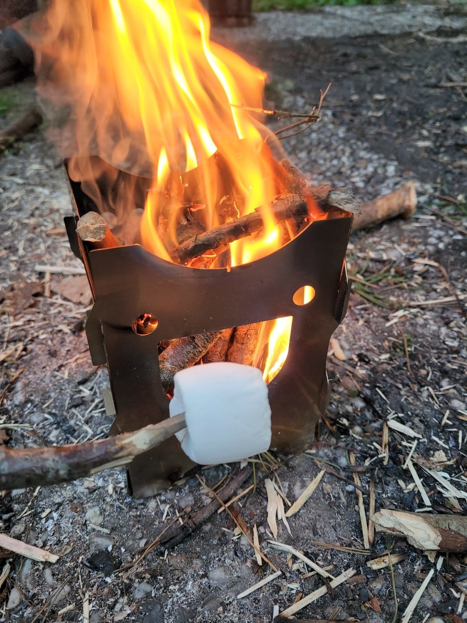 Meiner Meinung nach ist dies der kompakteste Kocher, der trotzdem funktionell ist; ich habe damit schon unzählige Mahlzeiten und Tassen Kaffee zubereitet. Die Brennkammer ist gerade groß genug, um ein Feuer zum Kochen zu machen - Einfachheit auf höchstem Niveau!