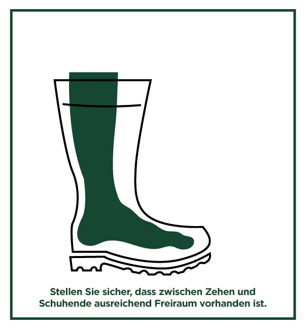 Jeder Fuß ist individuell, und wir wissen, dass richtig passende Schuhe wichtig sind. Unsere Gummistiefel sind in ganzen Größen erhältlich, lassen sich aber auch auf Zwischengrößen dehnen. In der Größe ist eine Zugabe von 15 mm für die Zehen enthalten.