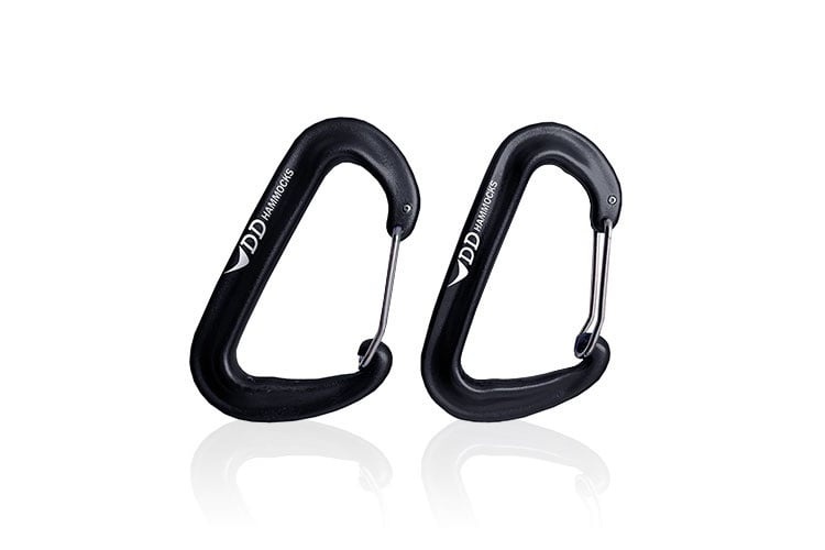 Sind Sie es leid, Knoten zu binden? Verwenden Sie die Karabiner zusammen mit DD Tree Huggers und DD Whoopie Slings und Sie können Ihre Hängematte in Sekundenschnelle zwischen den Bäumen einspannen und wieder lösen und dabei Ihren Aufhängewinkel perfektionieren.
