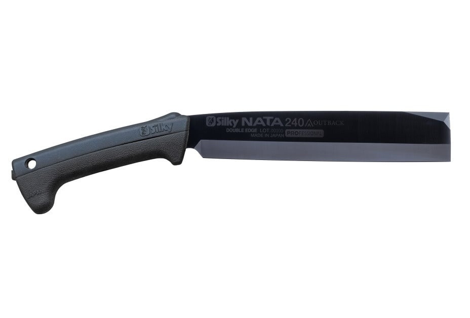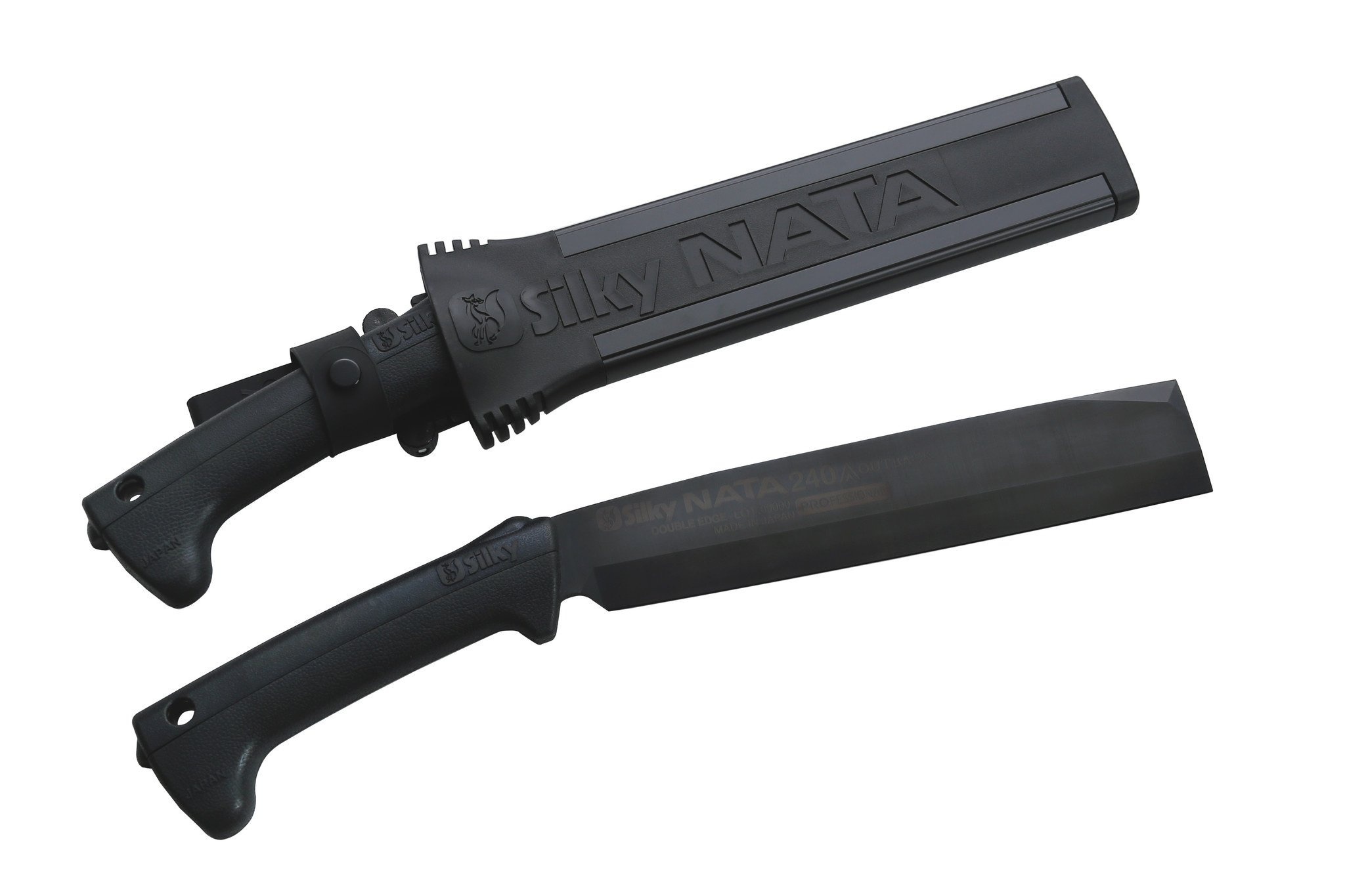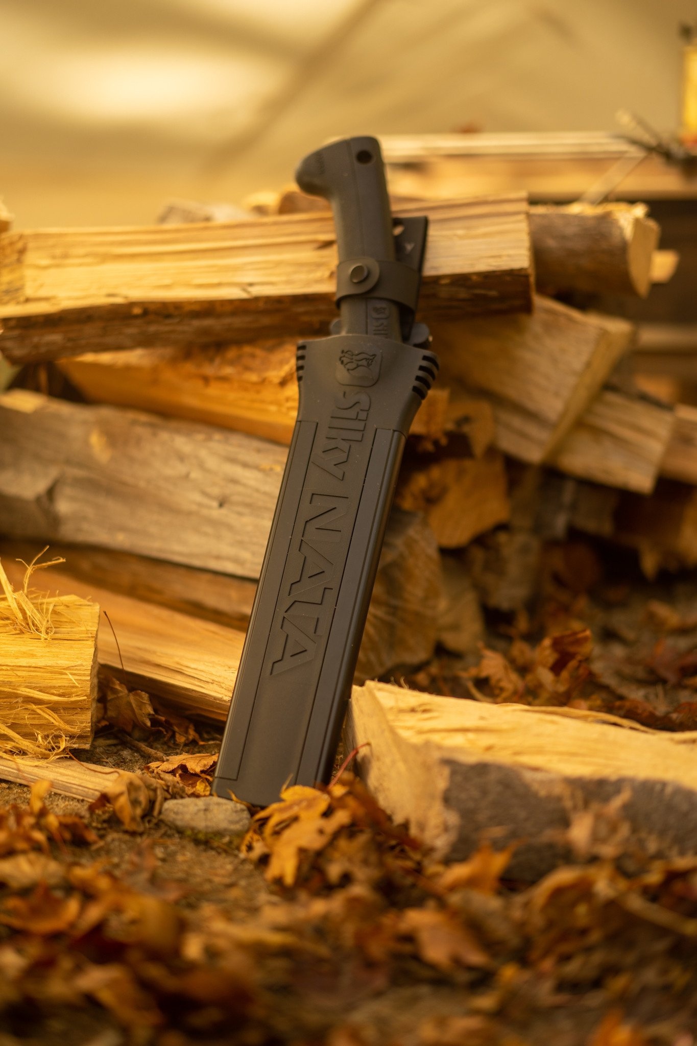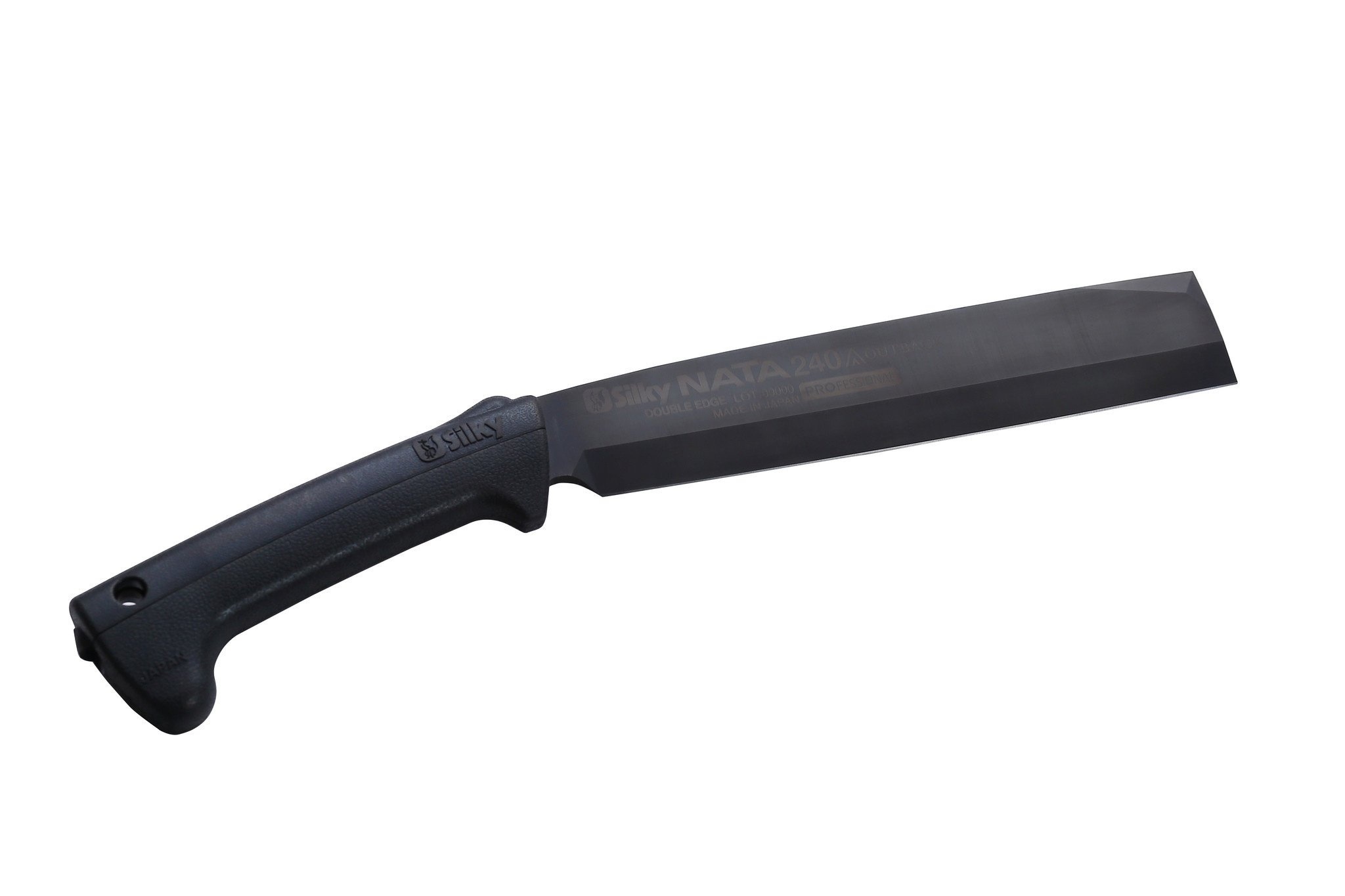 Das Schneiden von Holz ist oft schneller als das Sägen (oder Schneiden). Das Nata ist eine Mischung aus Stutzmesser und Stutzaxt und aus SKS-51-Stahl geschmiedet. Es ist zum Fällen kleinerer Äste oder zum Schälen oder Entrinden von Bäumen gedacht. Zu diesem Zweck ist das obere Ende der Klinge speziell geschliffen, damit sich die Rinde leicht schälen lässt. Der Genki-Griff dämpft praktisch alle Vibrationen, die durch die Schlagkraft verursacht werden, so dass diese kaum auf Hand und Unterarm übertragen werden, was einen hohen Arbeitskomfort gewährleistet.