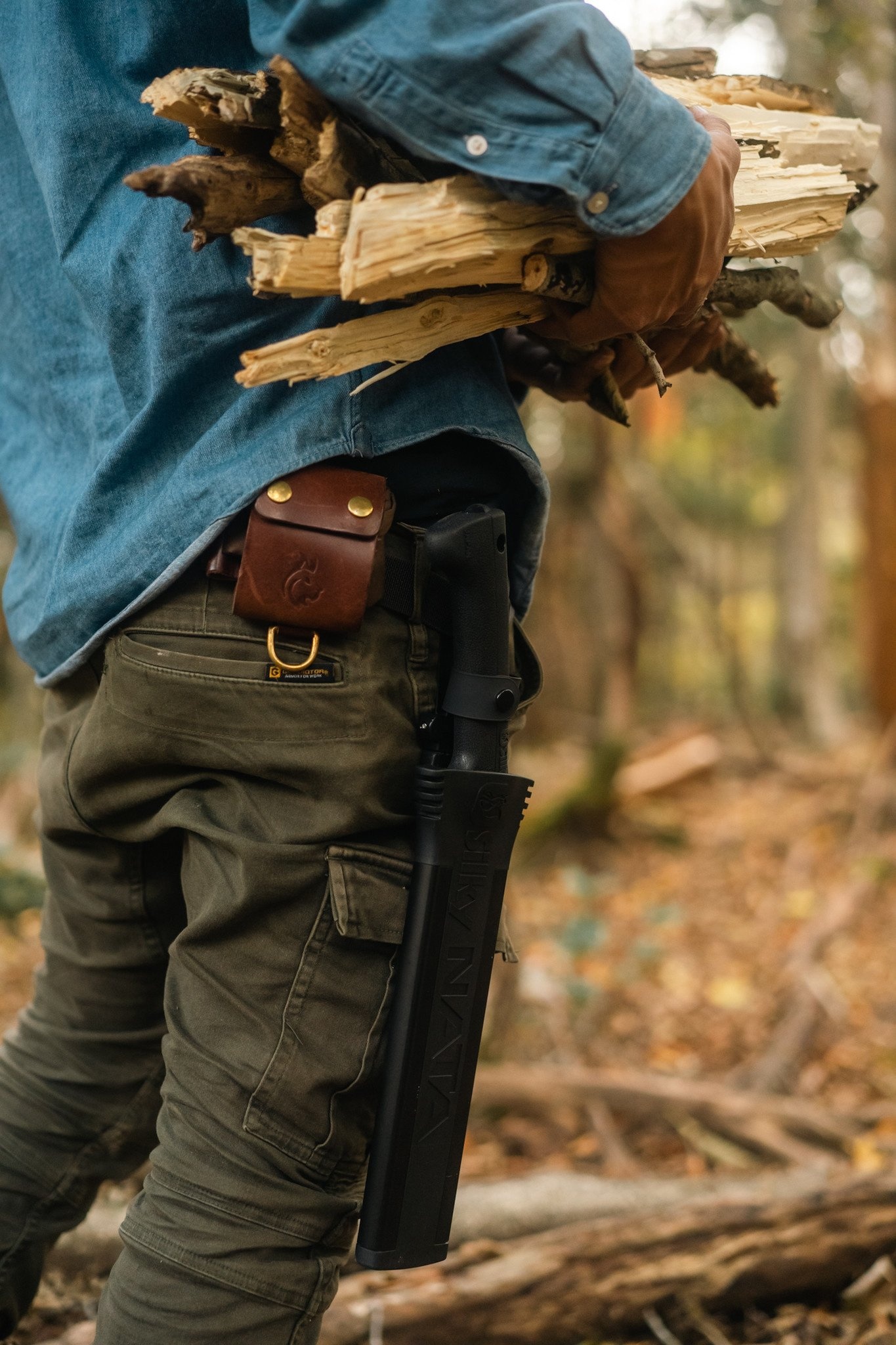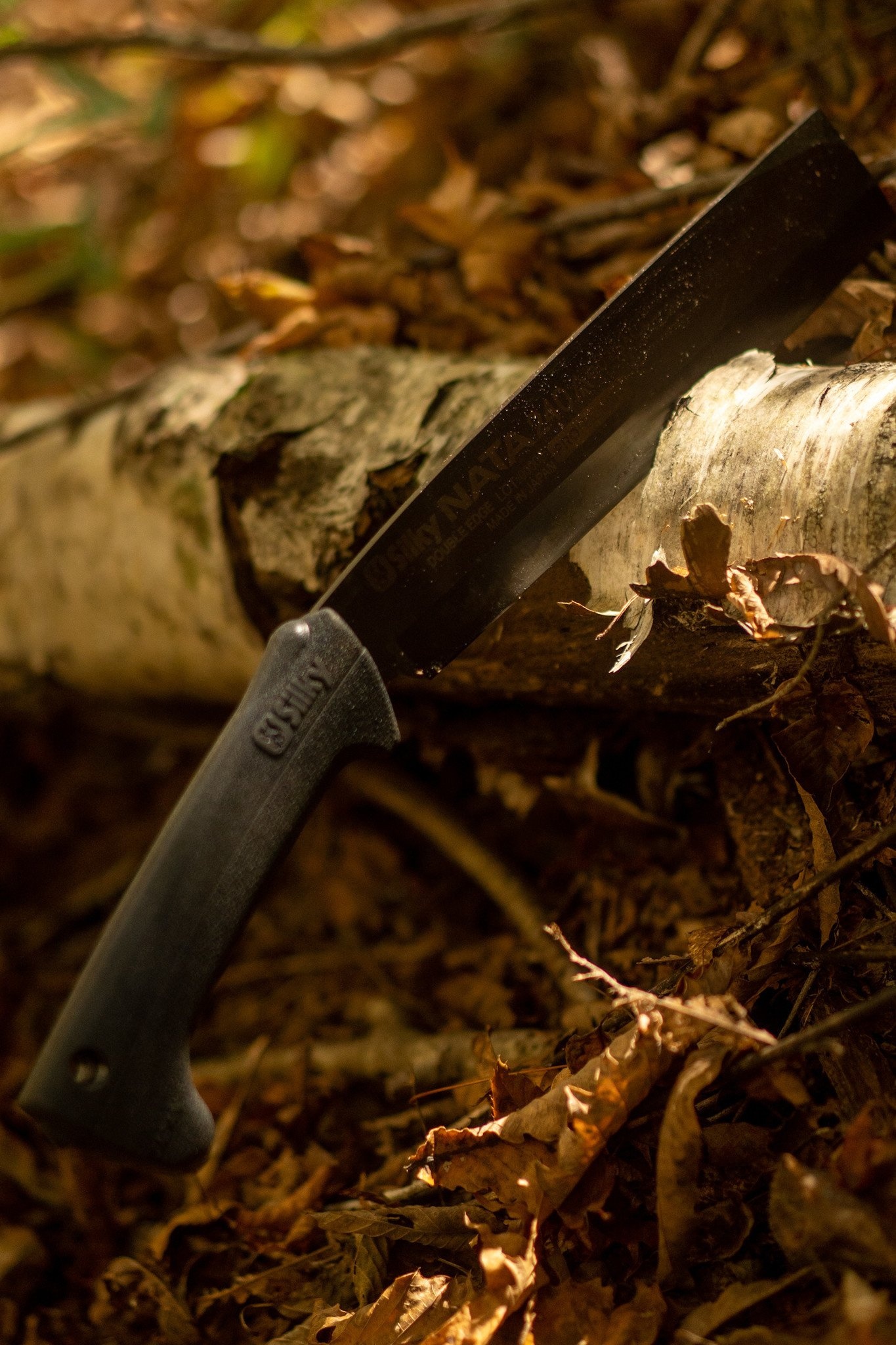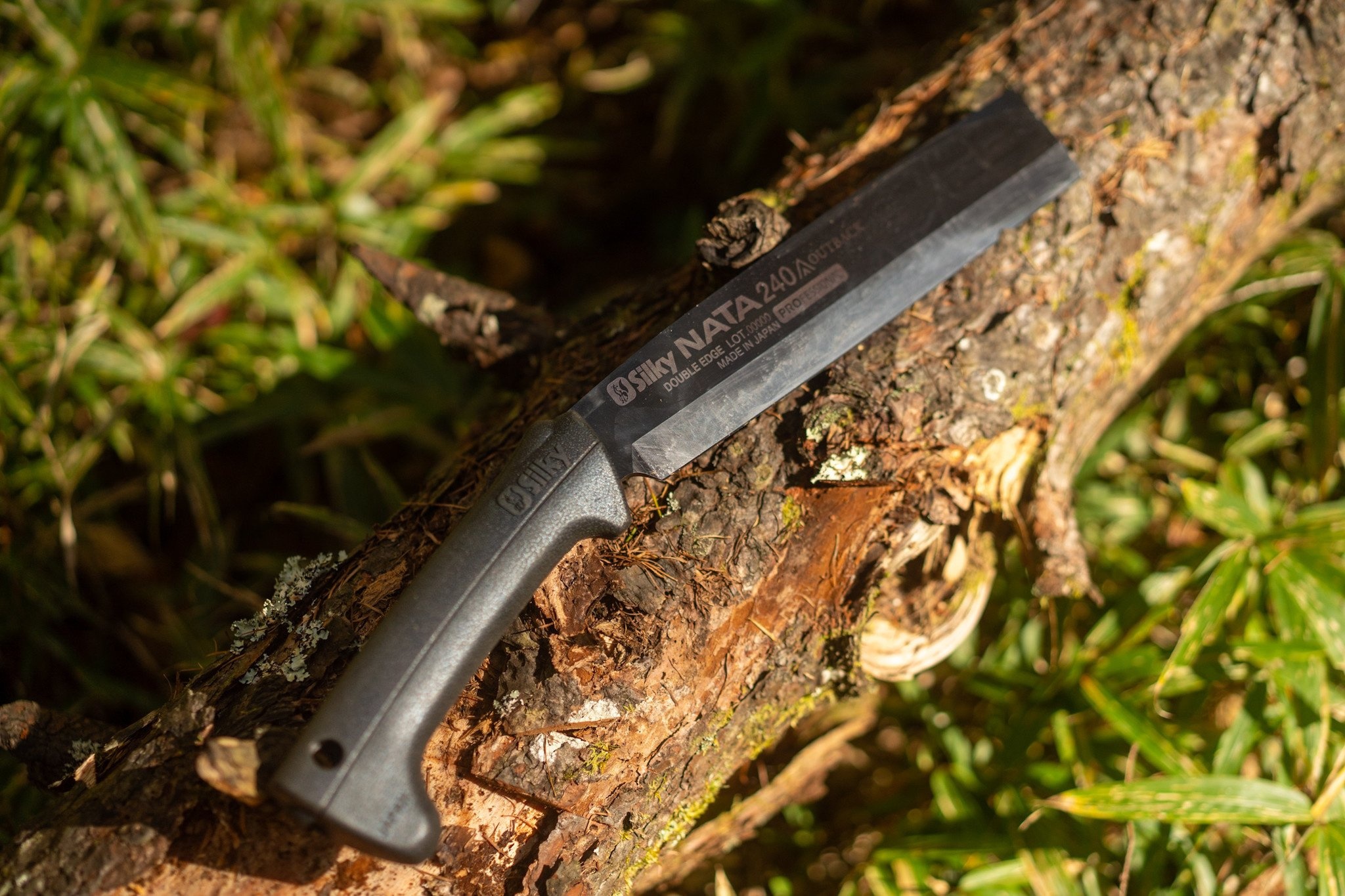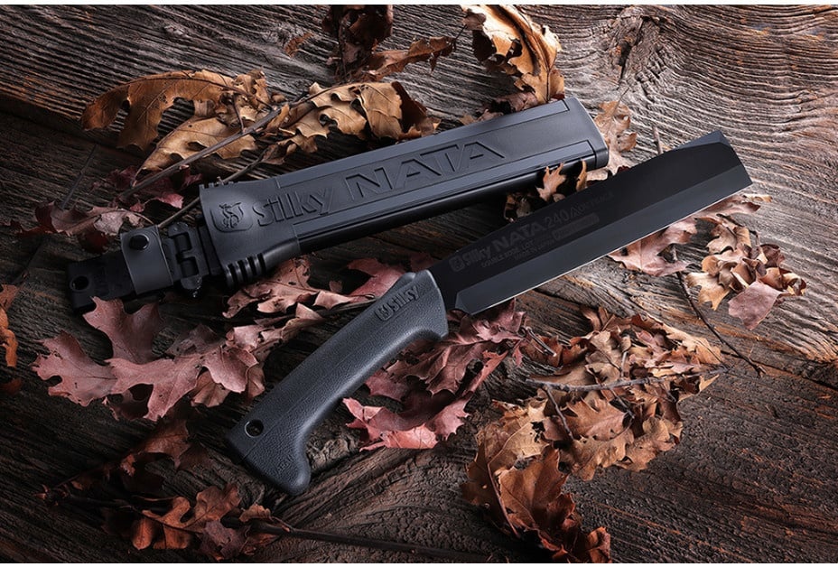 Das Schneiden von Holz ist oft schneller als das Sägen (oder Schneiden). Das Nata ist eine Mischung aus Stutzmesser und Stutzaxt und aus SKS-51-Stahl geschmiedet. Es ist zum Fällen kleinerer Äste oder zum Schälen oder Entrinden von Bäumen gedacht. Zu diesem Zweck ist das obere Ende der Klinge speziell geschliffen, damit sich die Rinde leicht schälen lässt. Der Genki-Griff dämpft praktisch alle Vibrationen, die durch die Schlagkraft verursacht werden, so dass diese kaum auf Hand und Unterarm übertragen werden, was einen hohen Arbeitskomfort gewährleistet.