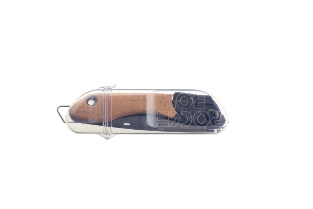 Der 'Arbor Composite'-Griff besteht aus einer Holz-Verbundstoff-Komposition, die ein warmes und angenehmes Gefühl und eine hervorragende Kontrolle bietet. Der Griff ist etwas härter als Silkys üblicher GOM-Gummigriff, bietet aber mehr Halt bei fettigen Substanzen. Die Pocketboy Outback Edition ist kompakt, leicht und wird standardmäßig mit einem transparenten Hartschalenkoffer geliefert.