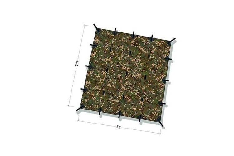 Das Camouflage-Muster lässt das Tarp in der Natur verschwinden.