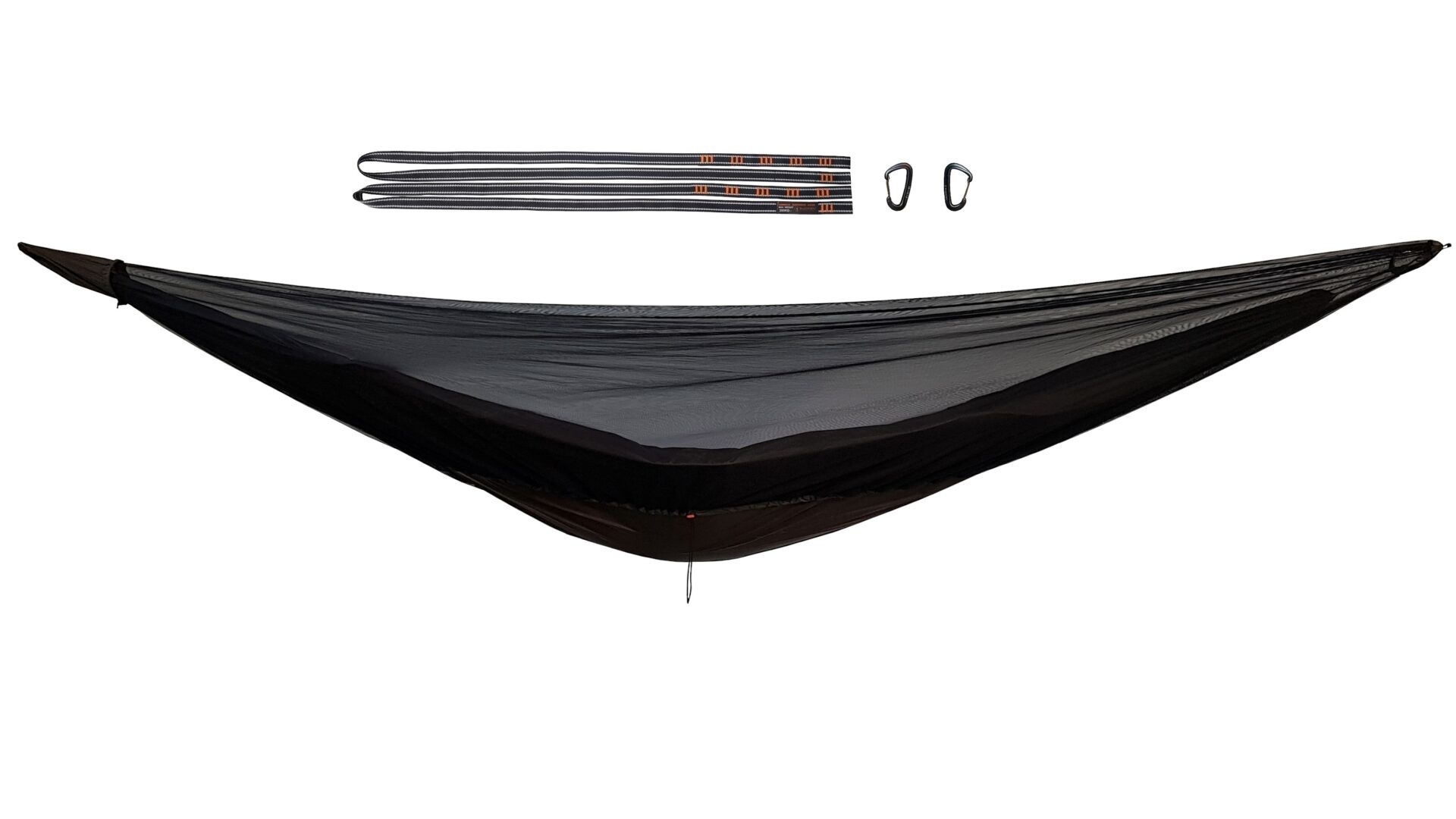Komplettes Hängemattenset für den leichten Bushcrafter! Das Set besteht aus einer ultraleichten Hängematte, einem Treehugger-Aufhängesystem, einem abnehmbaren Moskitonetz und einer verstellbaren Dachlatte. Für den Einsatz über Nacht in Kombination mit Tarp, Obersteppdecke und Untersteppdecke.